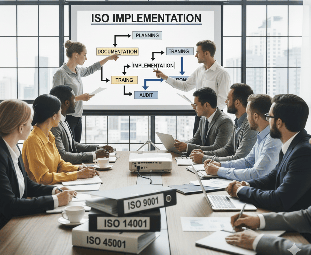 Implementation, Training and Second Party audit services for ISO 9001, ISO 14001, ISO 45001, SA 8001, ISO 50001, RC14001. and Integrated management system (IMS)